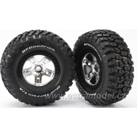 Kompletní přední kola pro 2WD auta Traxxas Slash. Saténové disky s nalepenými pneumatikami BFGoodrich® KM2 a vložkou. Duální průměr disku 2.2/3.0", celkový průměr 110mm, šířka 45mm, šestihran 12mm.