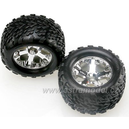 Kompletní přední kola pro auto Traxxas Nitro Stampede. Chromované disky All-Star s nalepenými pneumatikami Talon a vložkou.