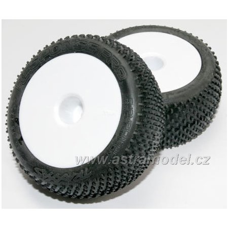 Kompletní univerzální kola pro RC auta Traxxas Revo 1:16. Bílý disk s nalepenými pneumatikami Response Pro a vložkou.