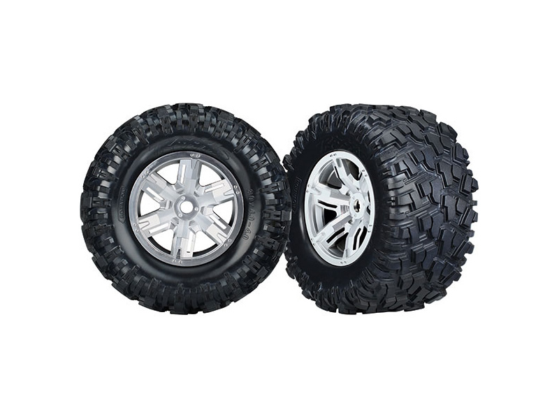 Kompletní kola pro model X-Maxx. Disky Saténový chrom s pneumatikami Maxx (2 ks v balení).