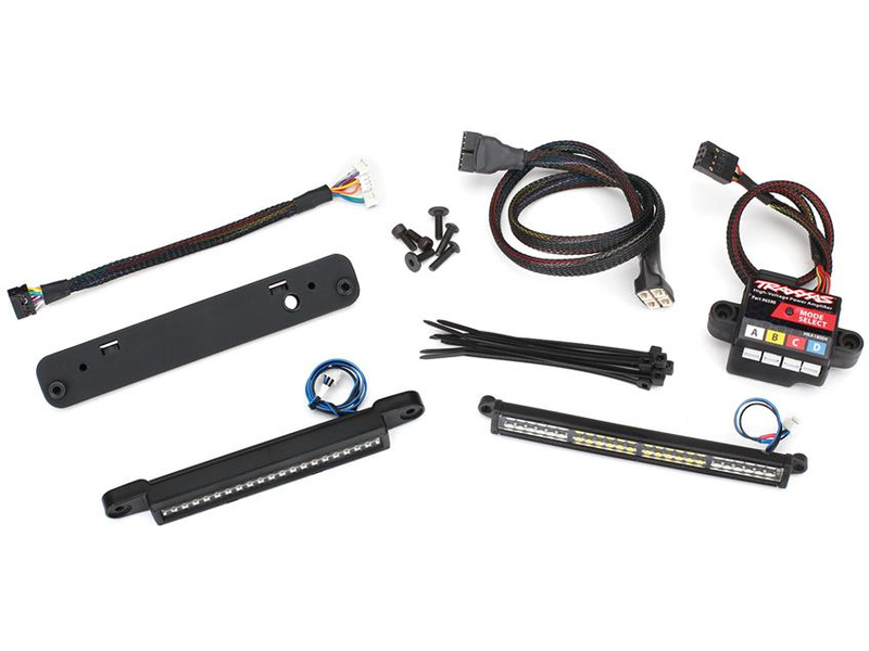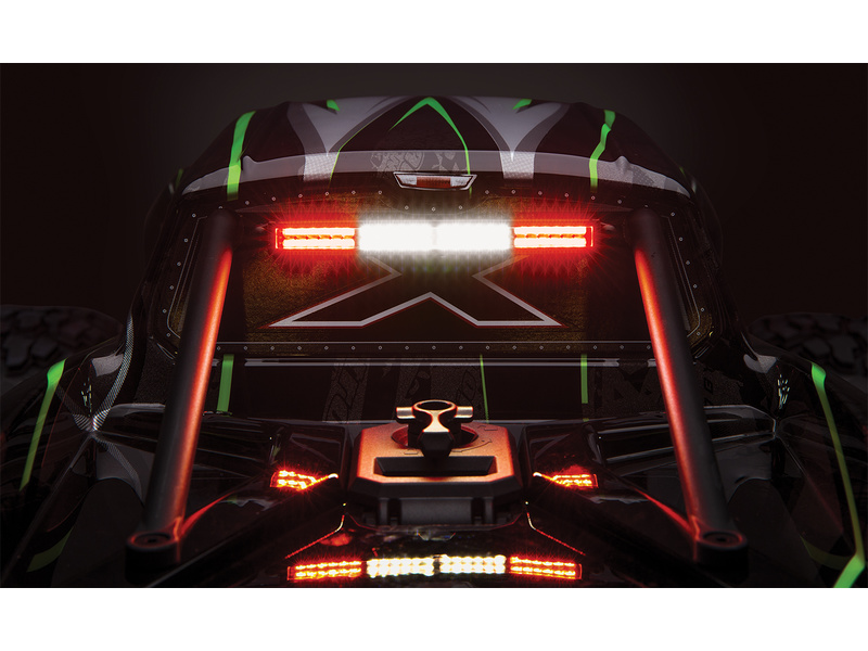 Traxxas kompletní LED osvětlení pro RC model auta Traxxas 1:5 X-Maxx. Posuňte Váš model na novou úroveň a užijte si dech beroucí jízdu ve dne i v noci. Přední LED lišta do nárazníku bezpečně nasvítí cestu před Vámi, zatím co zadní brzdová lišta dodá modelu šmrnc, díky brzdovým světlům, které fungují opravdu jen když brzdíte.