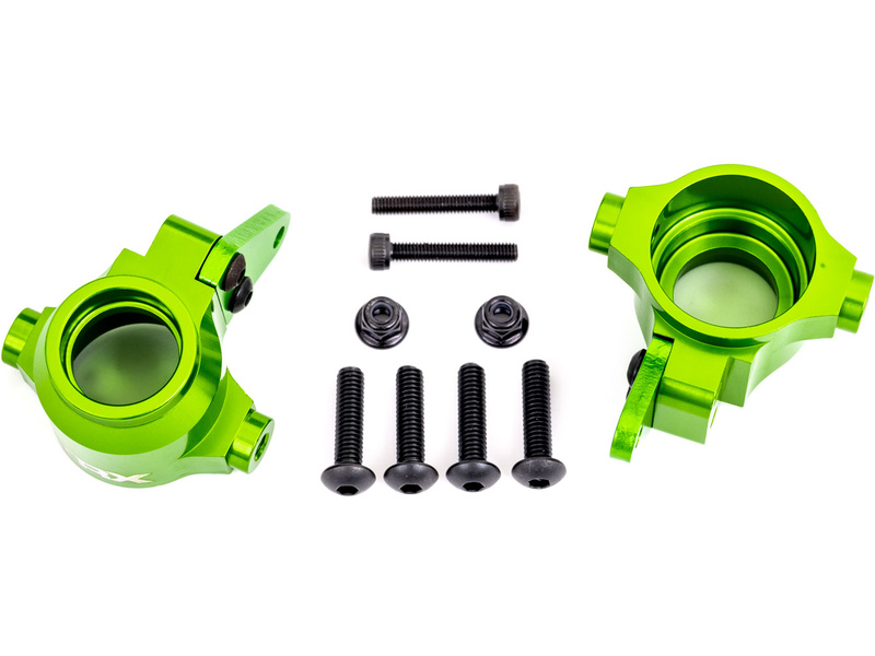 Tuningový díl z lehkého a odolného hliníku pro vyskou odolnost. Designové barevné eloxování - Traxxas těhlice přední hliníková zeleně eloxovaná (levá a pravá)