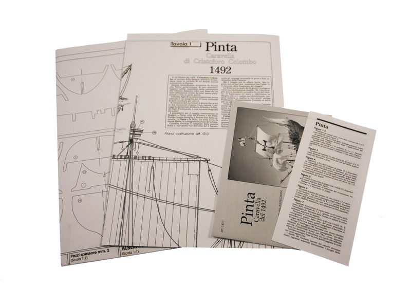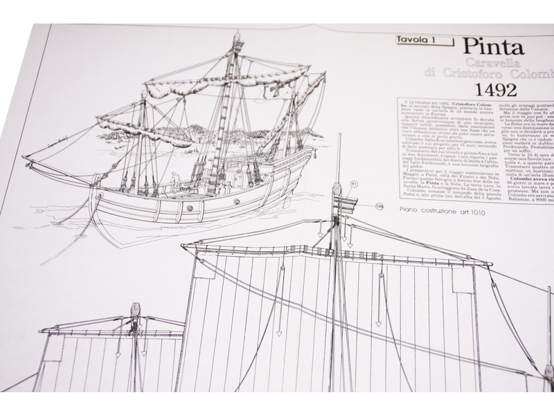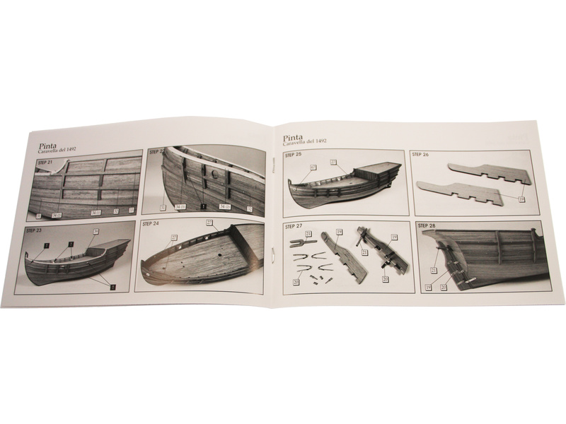 Stavebnice statické makety lodi, AMATI Pinta karavela z roku 1492 v měřítku 1:65 kit. Jedna ze tří lodí, s nimiž Kryštof Kolumbus objevil Ameriku. Tento model je součástí série Columbus společnosti AMATI. Dřevěné díly jako kýl a obšívka jsou řezány laserem, obsahuje plachty, lanoví, stožáry, kování, plány, obrázkový a český návod ke stavbě.