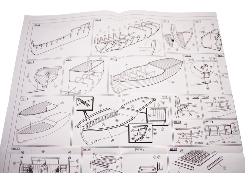 Set obsahuje kompletní sadu výkresové dokumentace modelu v měřítku 1:1 s postupem stavby, na výkrese jsou pečlivě označeny díly a je zde i seznam jednotlivých součástí modelu.