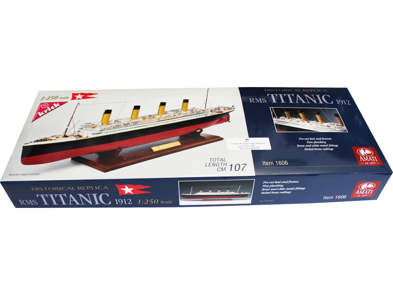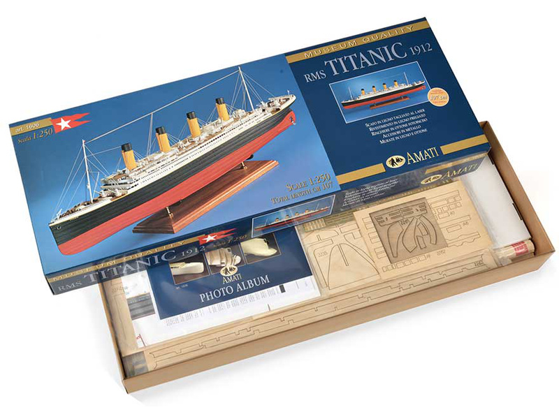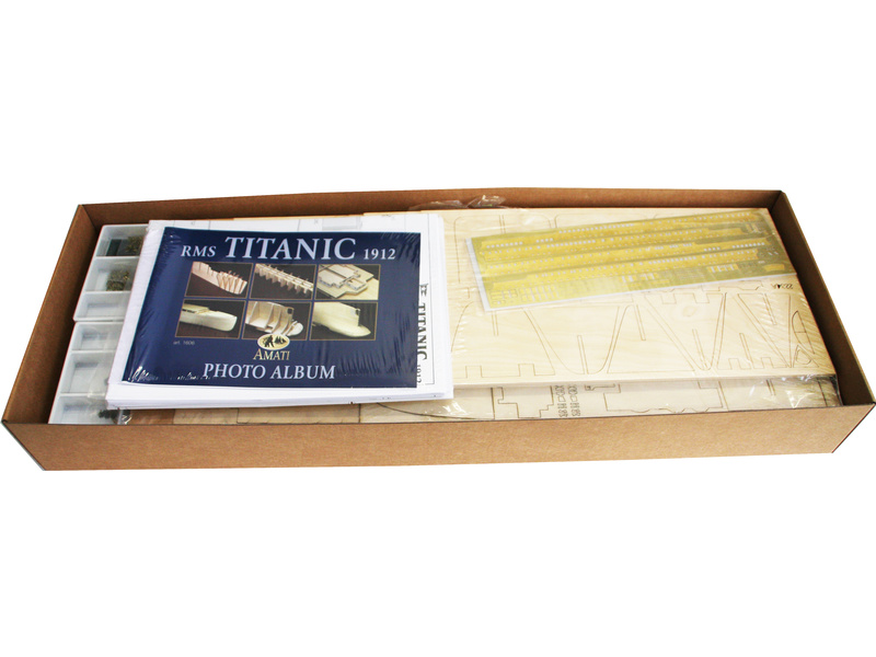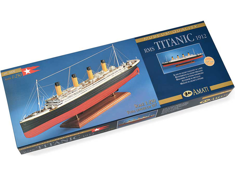 Stavebnice statické makety lodi, AMATI R.M.S. Titanic v měřítku 1:250 je určena náročným modelářům, kteří jsou připraveni strávit při stavbě hodně času. Konstrukce je celodřevěná, z laserem řezané překližky a dřevěných dílů. V balení je řada drobných detailů a kování.