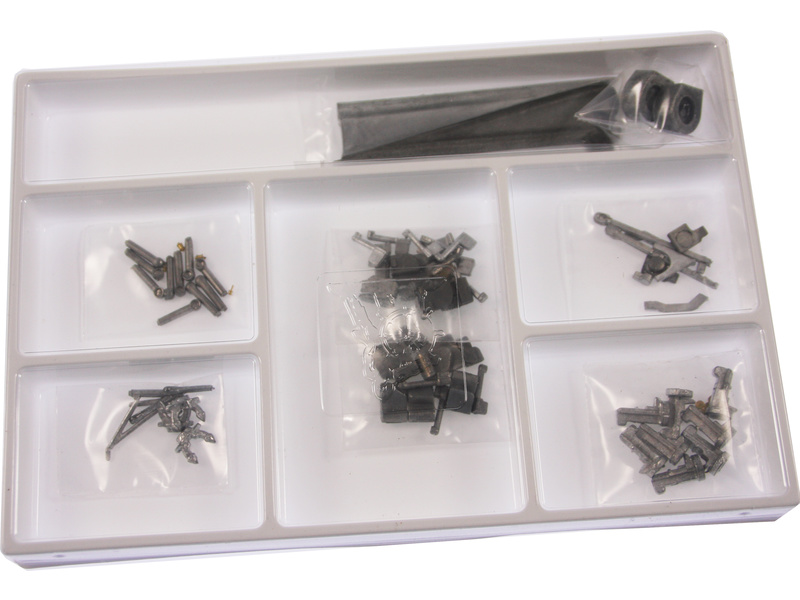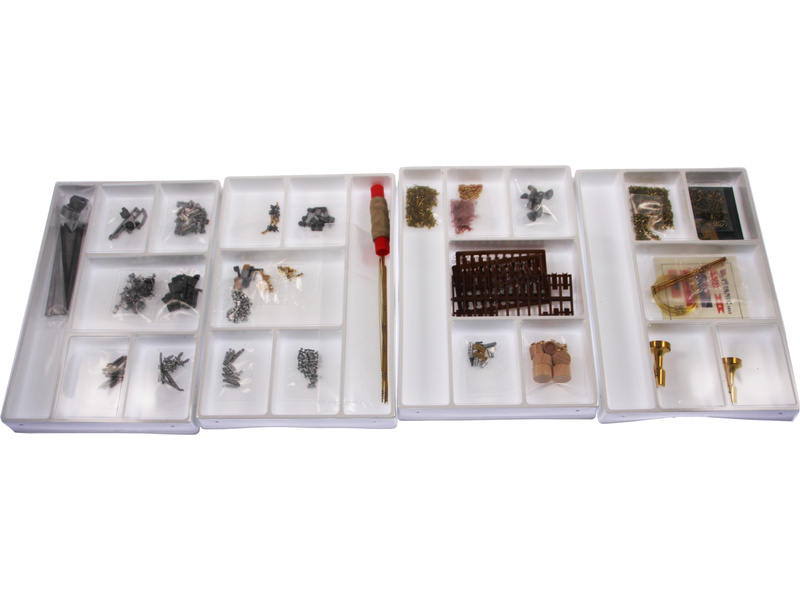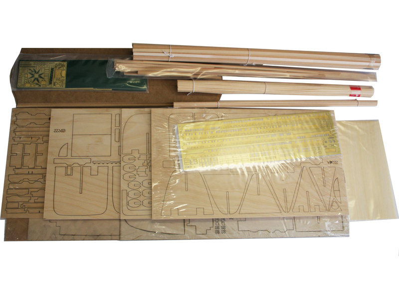Balení obsahuje sadu překližkových dílů, sadu dřevěných lišt o různém průřezu, blistr s drobnými díly, sadu výkresů a vícejazyčný manuál.