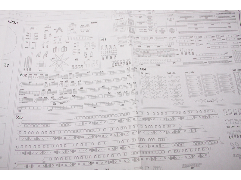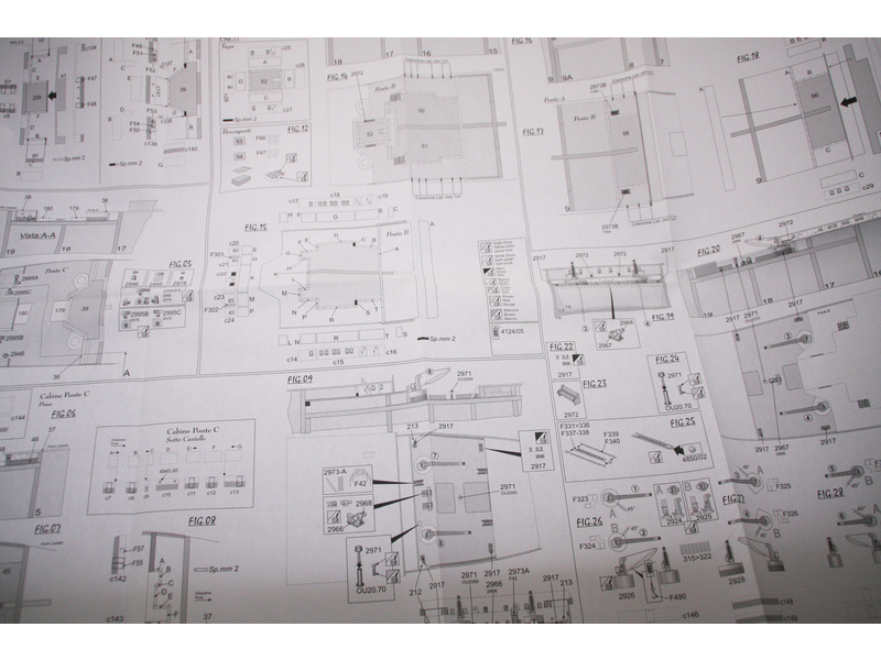 Set obsahuje kompletní sadu výkresové dokumentace modelu v měřítku 1:1 s postupem stavby, na výkrese jsou pečlivě označeny díly a je zde i seznam jednotlivých součástí modelu.