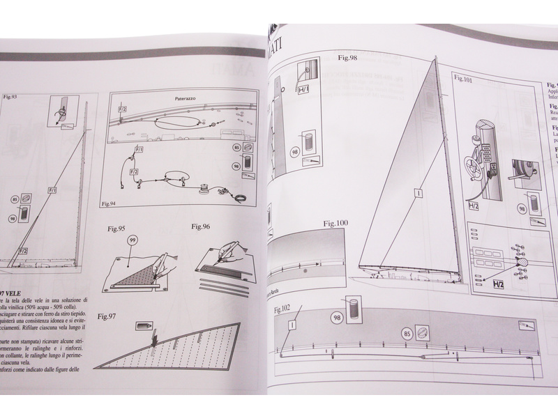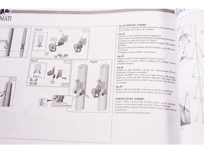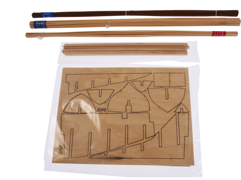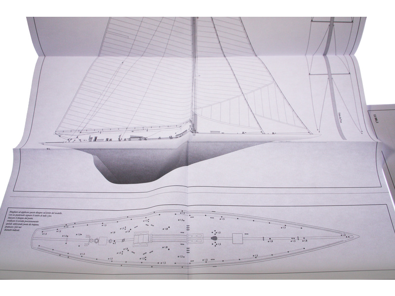 Balení obsahuje sadu překližkových dílů, sadu dřevěných lišt o různém průřezu, blistr s drobnými díly, sadu výkresů, obrázkový manuál s italským popisem a německý překlad.