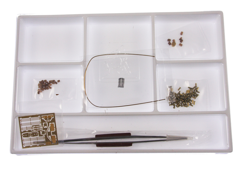 Po otevření víka krabice naleznete dřevěné díly modelu z překližky, sadu lišt, drobné součásti uzavřené v plastovém průhledném blistru, sadu výkresů a manuál.