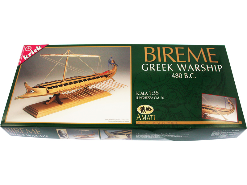 Řecká bitevní loď Biréma v měřítku 1:35 od Amati je statickou maketou řecké birémy z roku 480 př.nl. Rychlá loď byla vybavena 44 veslaři ve dvou řadách. Jedinou ranou hrotem přídě dokázala rozdrtit loď protivníka a poslat jej ke dnu. Sada obsahuje laserem vyřezaný kýl a obšívku, dřevěné doplňky, ozdobné kování a plachtu.