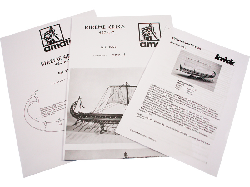 Řecká bitevní loď Biréma v měřítku 1:35 od Amati je statickou maketou řecké birémy z roku 480 př.nl. Rychlá loď byla vybavena 44 veslaři ve dvou řadách. Jedinou ranou hrotem přídě dokázala rozdrtit loď protivníka. Sada obsahuje laserem vyřezaný kýl a obšívku, dřevěné doplňky, ozdobné kování a plachtu.