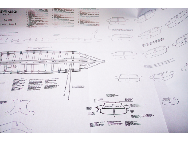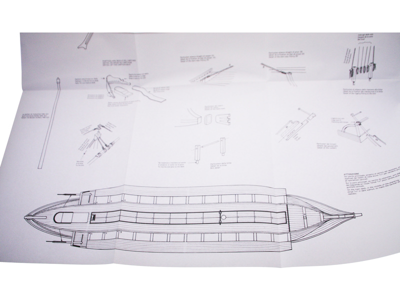 Set obsahuje kompletní sadu výkresové dokumentace modelu v měřítku 1:1 s postupem stavby, na výkrese jsou pečlivě označeny díly a je zde i seznam jednotlivých součástí modelu.