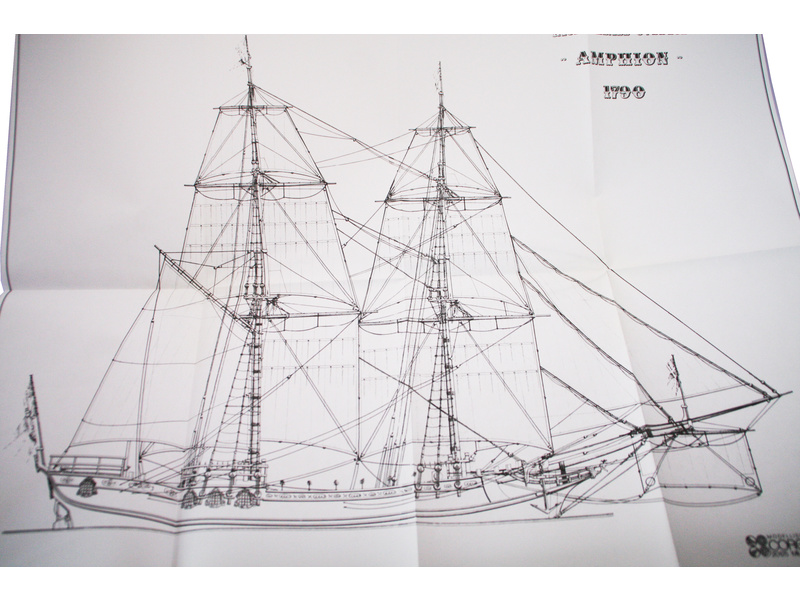 Stavba byla zahájena v roce 1778 a byla spuštěna na vodu v roce 1850. Model zobrazuje Amphion jak vypadal v roce 1790. Zvláštní pozornost byla věnována designu zlaceného ornamentu. Téměř všechny dřevěné díly jsou vyřezány. Sedm stavebních plánů s četnými perspektivními výkresy.