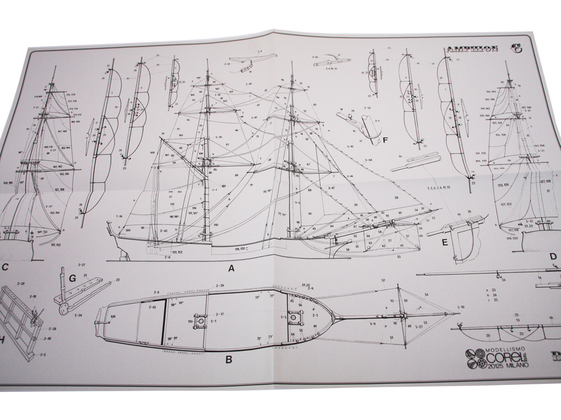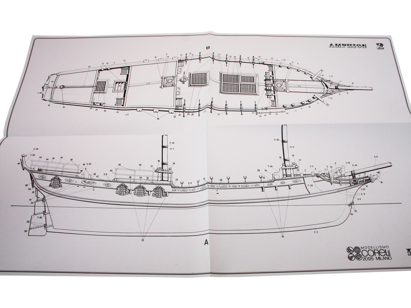 Stavebnice neplovoucího modelu COREL Amphion v měřítku 1:40 z roku 1778. Stavitelem lodi byl Frederik Chapman, pro švédského krále Gustava III. navrženo a postaveno v loděnici Djurgarden ve Stockholmu. V balení jsou dřevěné díly, lišty a množství kování, lanoví, plachty, plány atd.