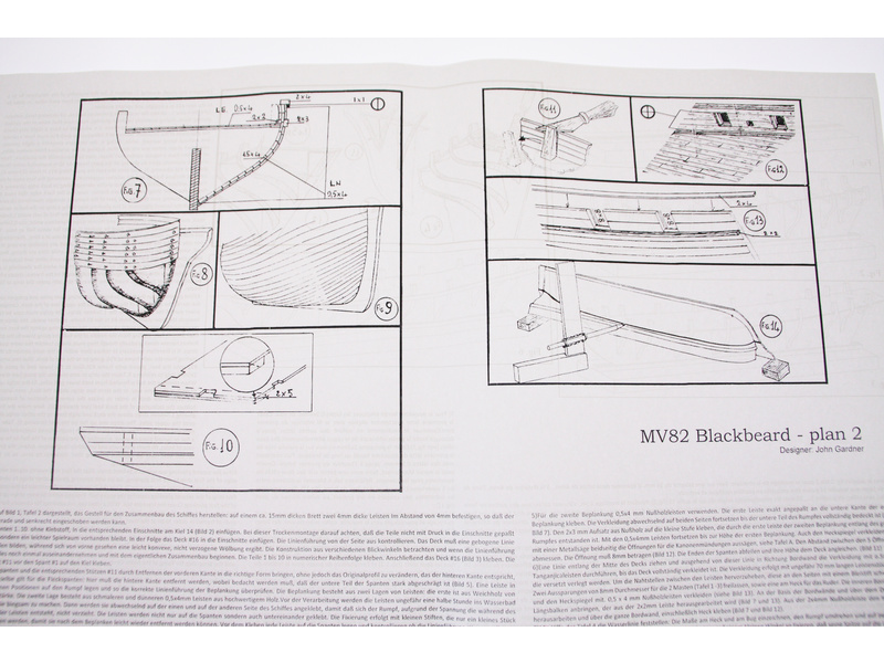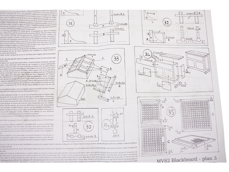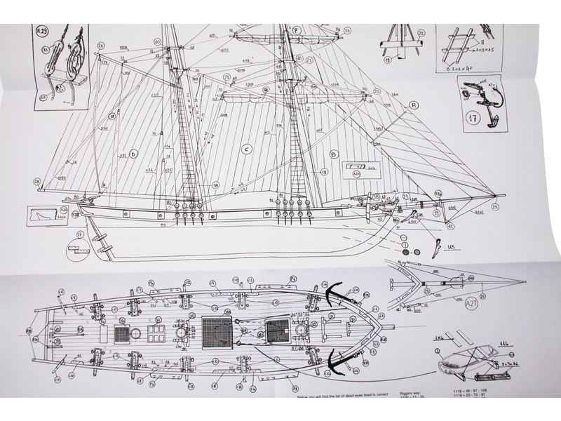 Set obsahuje kompletní sadu výkresové dokumentace modelu v měřítku 1:1 s obrázky jednotlivých detailů. Na výkrese jsou v měřítku nakresleny montážní sestavy, jejich kompletace a to včetně stěžňů a ráhen a způsob vázání lanoví. Postup stavby rámcově upravuje logické sestavení jednotlivých komponentů.