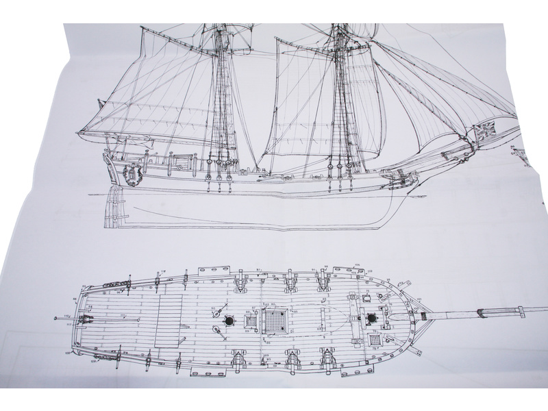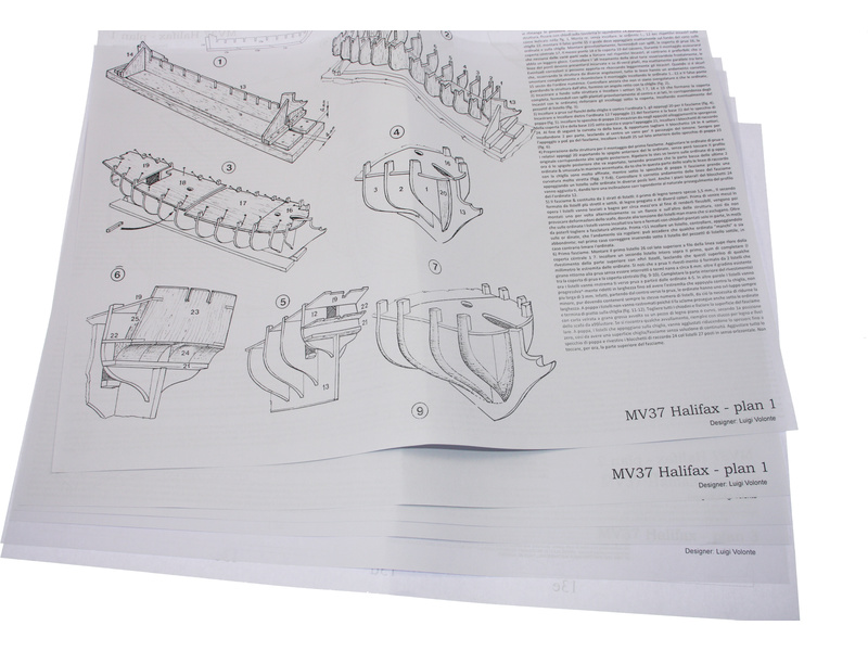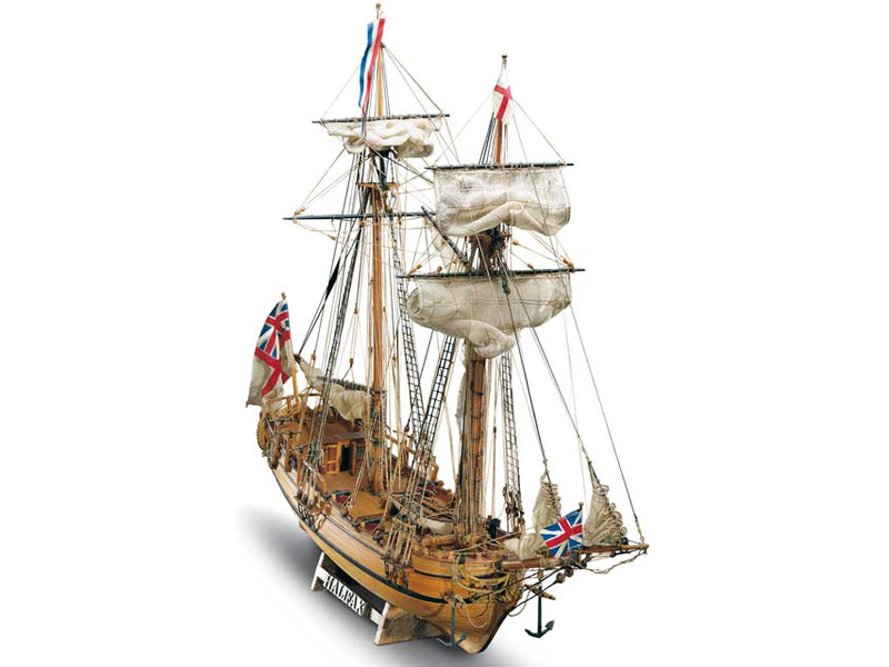 Stavebnice neplovoucího modelu MAMOLI Halifax v měřítku 1:54 z roku 1768. Loď byla postavena pro poštovní služby, Halifax v roce 1768 koupilo anglické královské námořnictvo a přestavělo jej v loděnici v Portsmouthu na typickou jachtu. V balení jsou dřevěné díly, lišty a množství kování, lanoví, plány atd.