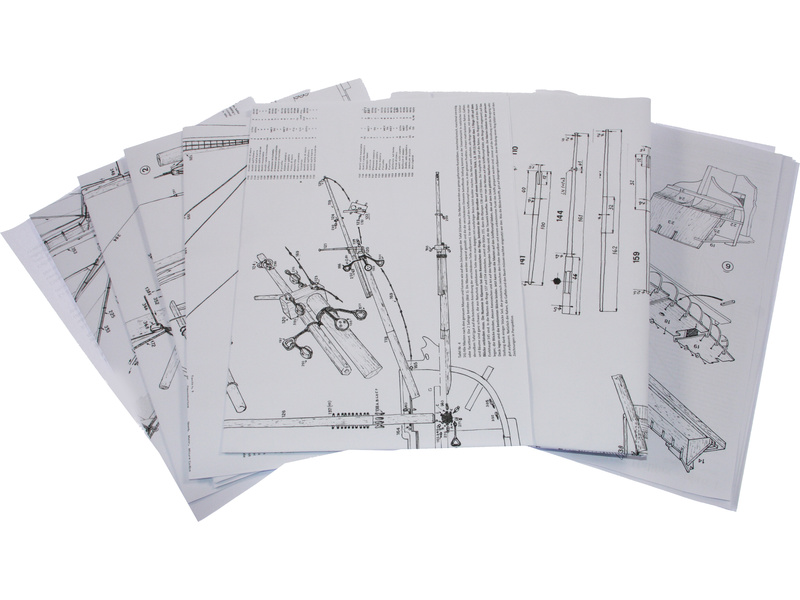 Balení obsahuje sadu překližkových dílů, sadu dřevěných lišt o různém průřezu, blistr s drobnými díly, sadu výkresů a anglický manuál.