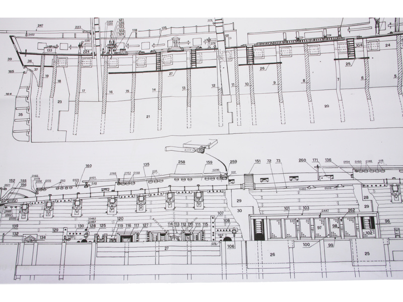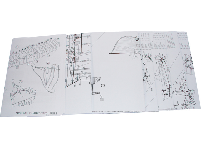 Stavebnice části neplovoucího modelu MAMOLI USS Constitution příčný řez 1:93 s parametry - šířka 320mm a výška 667mm. USS Constitution je dřevěná trojstěžňová fregata námořnictva Spojených států amerických, která slouží od roku 1797 dodnes. V balení jsou dřevěné díly, lišty a množství kování, lanoví, plány atd.