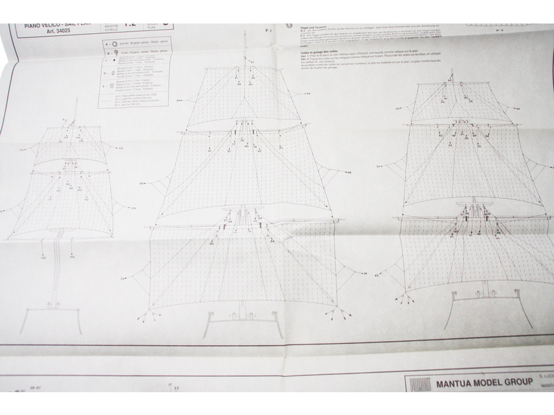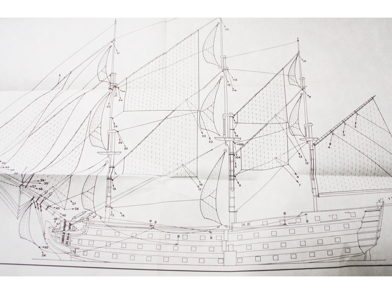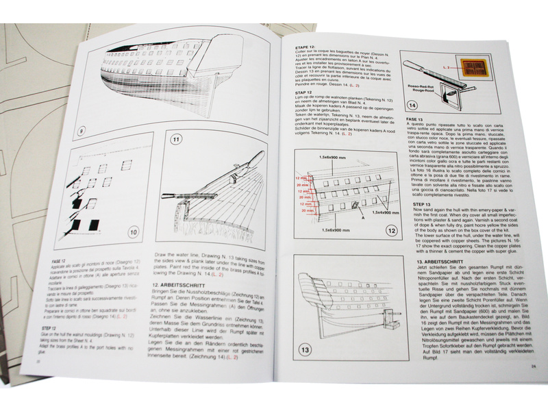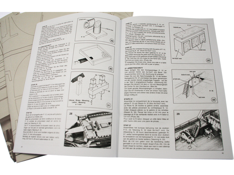 Set obsahuje kompletní sadu výkresové dokumentace modelu v měřítku 1:1 s obrázky jednotlivých detailů. Na výkrese jsou v měřítku nakresleny montážní sestavy, jejich kompletace a to včetně stěžňů a ráhen a způsob vázání lanoví. Vícejazyčný postup stavby rámcově upravuje logické sestavení jednotlivých komponentů.