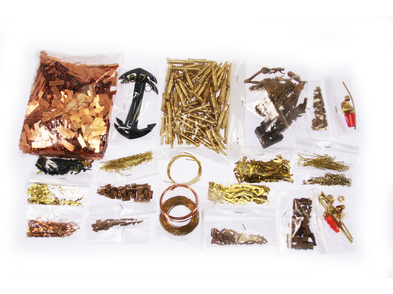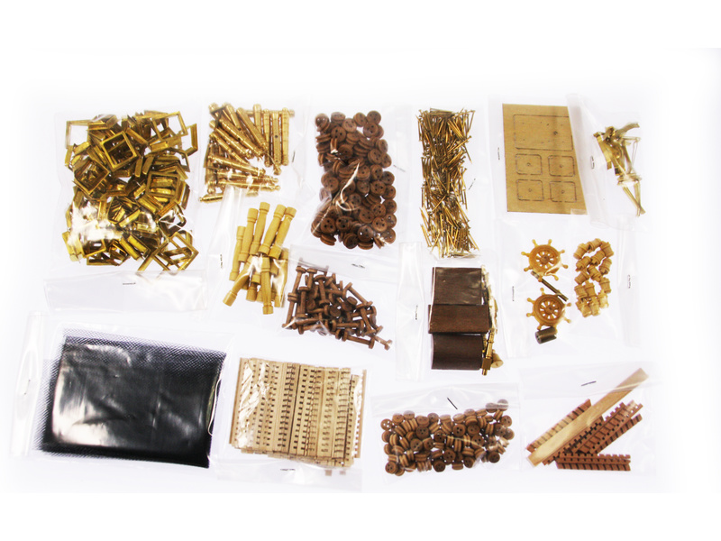 Balení obsahuje sadu překližkových dílů, sadu dřevěných lišt o různém průřezu, blistr s drobnými díly, díly z mosazi, sadu výkresů a vícejazyčný manuál.