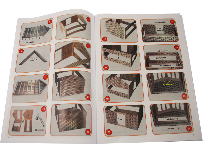 Balení obsahuje sadu překližkových dílů, dřevěných lišt o různém průřezu, sadu výkresů a vícejazyčný manuál.