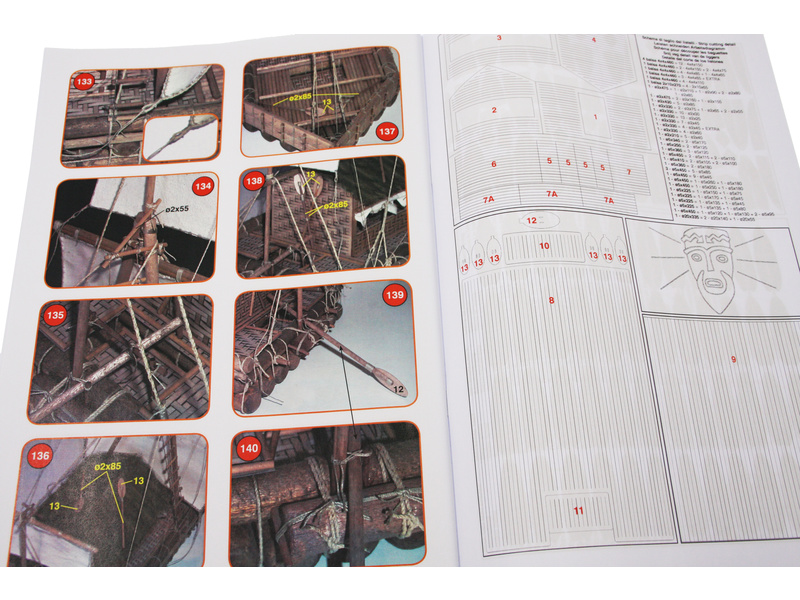 Set obsahuje kompletní sadu výkresové dokumentace modelu v měřítku 1:1 s obrázky jednotlivých detailů. Na výkrese jsou v měřítku nakresleny montážní sestavy, jejich kompletace a to včetně stěžňů a ráhen a způsob vázání lanoví. Vícejazyčný postup stavby rámcově upravuje logické sestavení jednotlivých komponentů.