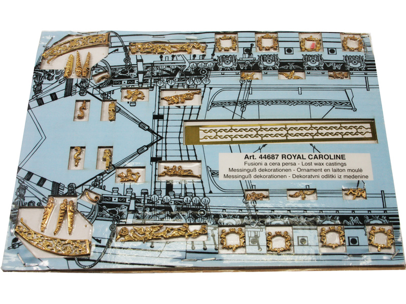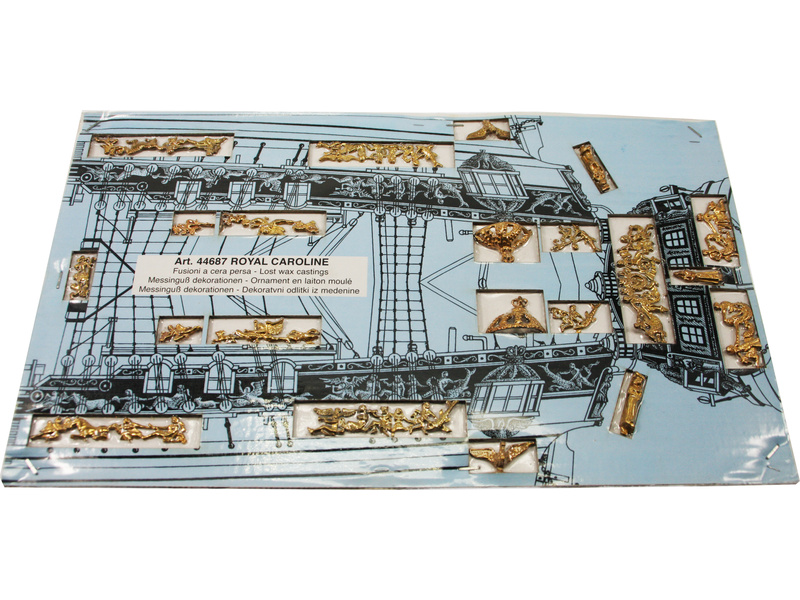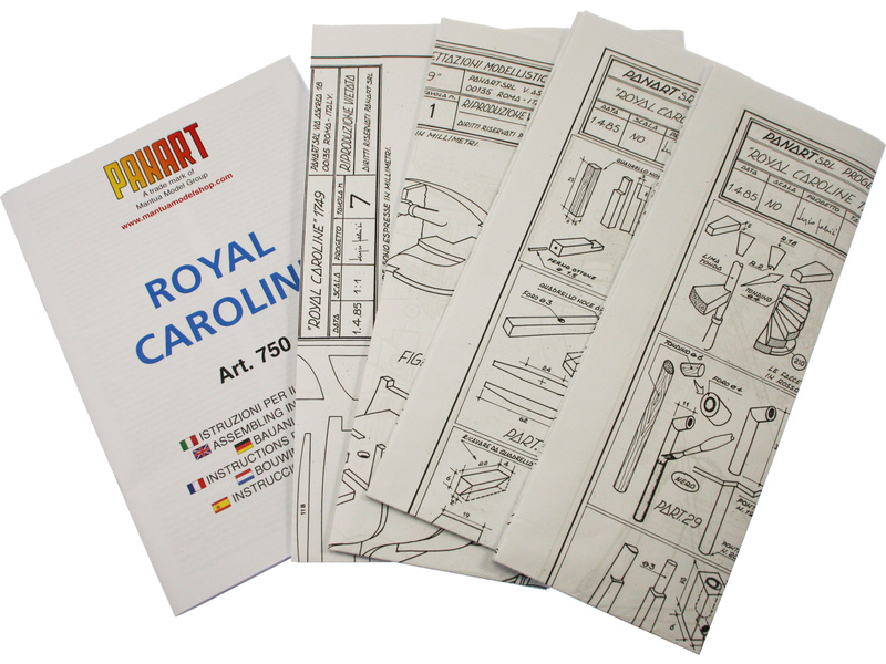 Stavebnice neplovoucího modelu lodi Mantua Model Royal Caroline v měřítku 1:47 a délce 830mm, byla postavena v loděnici Bedford v roce 1749 jako jachta pro anglickou královskou rodinu. Kit obsahuje dřevěné díly, kovové odlitky dekorací a podrobné stavení plány.