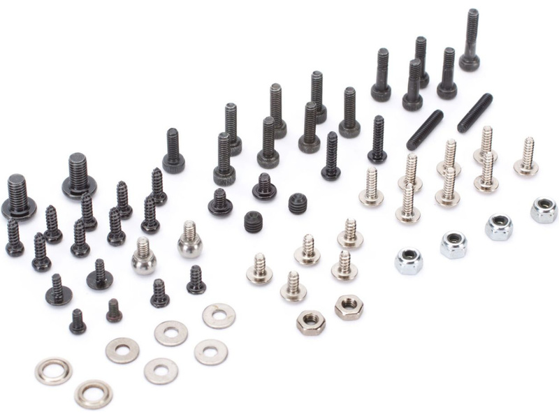 Sada šroubku značky Blade na vrtulník. Balení obsahuje šroubky různé délky, průměru, půlkulatou hlavou, válcovou hlavou, zápustnou hlavou, červíky, matky, podložky.
