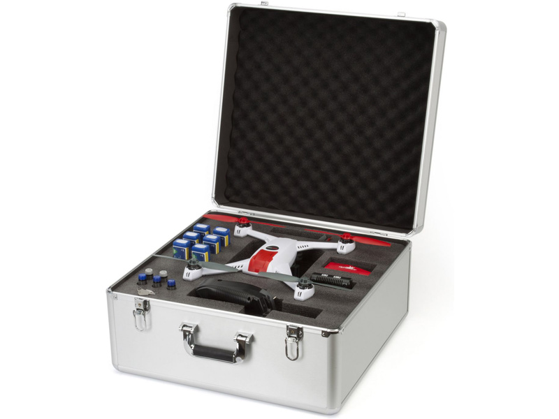 Hliníkový kufr pro bezpečnou přepravu kvadrokoptéry Blade 350 QX, QX2 nebo QX3 a příslušenství. Pojme vrtulník Blade 350QX, vysílač a příslušenství ( akumulátory, nabíječ, nářadí). Kufr je uvnitř pečlivě vypolstrovaný, má bezpečné uzamykatelné uzávěry.