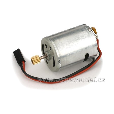 Stejnosměrný motor řady 370 s otáčkami 3400 ot/min/V. Rozměry průměr 24 mm, délka 31 mm. Na hřídeli průměru 2.0 mm je nalisovaný mosazný pastorek s 8 zuby a modulem ozubení 0.5 mm.