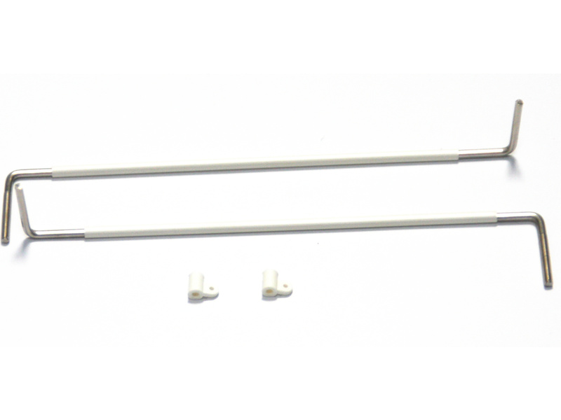 Náhon křidélek pravý-levý, délka celková 170mm, průměr drátu 2,5mm, na jedné straně závit M3 s plastovými koncovkami. Uloženo v plastové trubičce prům. 4mm, délky 135mm.