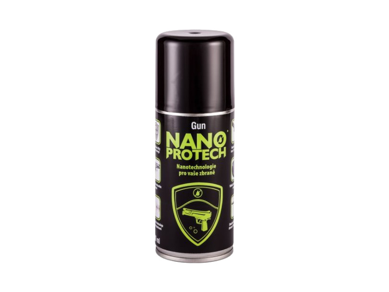 Přípravek Nanoprotech Gun pro střelné zbraně odstraňuje usazeniny od střelného prachu a zbytků olova. Dále zajišťuje promazání a antikorozní ochranu kovových částí. Nenarušuje ostatní materiály. Nanáší se na hlaveň, závěr, pružiny či jiné kovové části zbraní. Působí až po dobu 1 roku, spotřeba 50 ml/m², obsah spreje 150 ml.