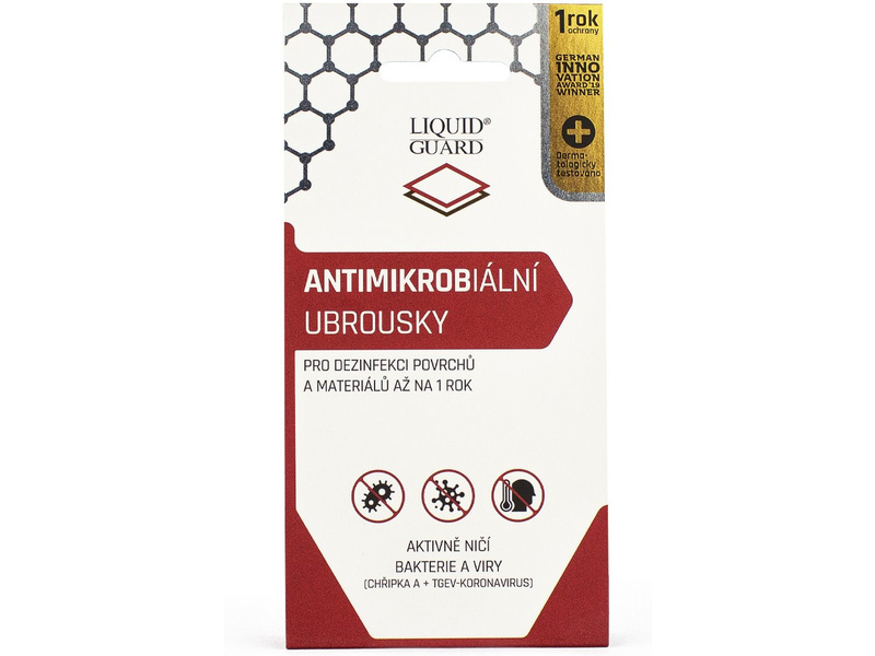 NANOPROTECH Liquid Guard antimikrobiální ubrousky aktivně chrání zdraví člověka až po dobu 1 roku. Aktivně hubí bakterie, viry (chřipka A a TGEV-koronavirus) a další mikroorganismy ze všech povrchů a materiálů.