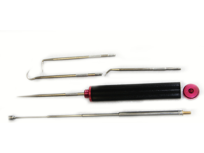Nástroj s výměnnými háčky, magnetem a rukojetí. V balení 3 zahnuté háčky, jeden rovný hrot, magnet s prodloužením, rukojeť.