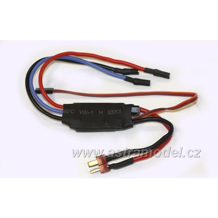 Střídavý regulátor 30 A s bezpečnostní pojistkou, která upozorní na dlouhodobou nečinnost regulátoru. Regulátor je určen pro tříčlánkové LiPo akumulátory, BEC 5 V / 2 A. Regulátor je vhodný pro motorové modely.