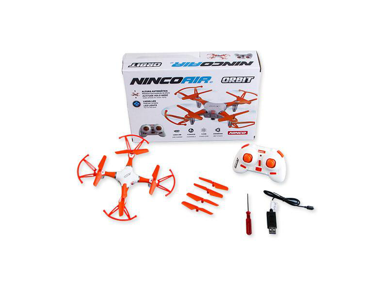 Balení obsahuje kompletně sestavený dron Nincoair Orbit. Čtyř kanálový vysílač 2,4 GHz. Vestavěný LiPo akumulátor 3,7V 150mAh, USB nabíječ. Dvě náhradní vrtule. Španělský, anglický, portugalský, německý, francouzský, italský a český návod. Pro provoz je nutné dokoupit 2x AA 1,5V baterie.
