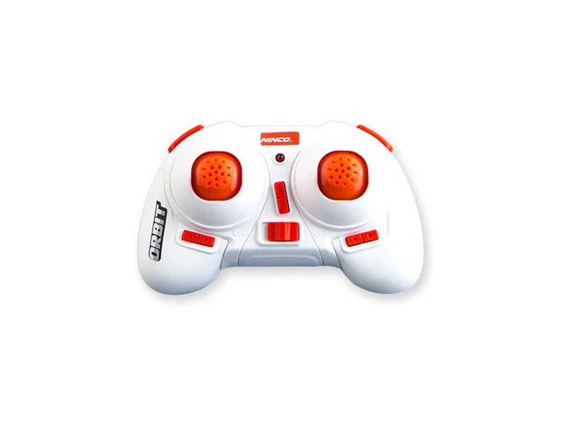 K řízení dronu je použit malý velmi dobře ergonomicky zpracovaný vysílač bílé barvy s oranžovými tlačítky který fantasticky padne do ruky dětem i dospělým. Vysílá na frekvenci 2,4 GHz díky které nedochází k žádnému rušení. 4-kanálový vysílač se skvělým dosahem 40m je v módu 2 (plyn vlevo). Má tyto funkce - let dopředu, let dozadu, let vlevo a vpravo. Přepínání letových režimů, vzlet a přistání, Flip 360 %.