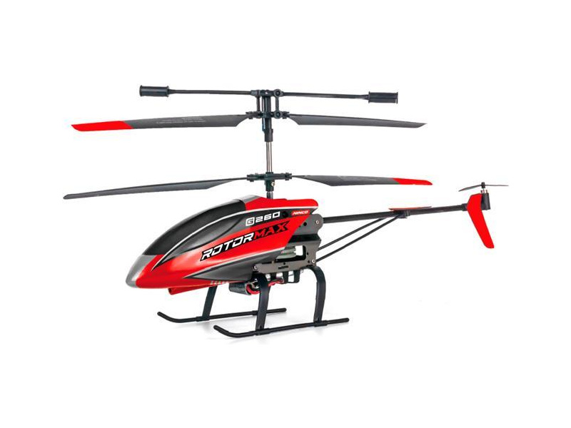 Dálkově řízený vrtulník pro začátečníky NINCOAIR Rotormax 2.4GHz RTF. Velmi stabilní díky integrovanému gyroskopu. Určen do interiéru.Režim držení výšky. Ocas s vrtulkou pro ovládání dopředného letu. Vysílač 2,4 GHz. Integrovaný akumulátor Li-Po 3,7V 500 mAh a USB kabel, součástí balení. Doba letu až 6 minut.