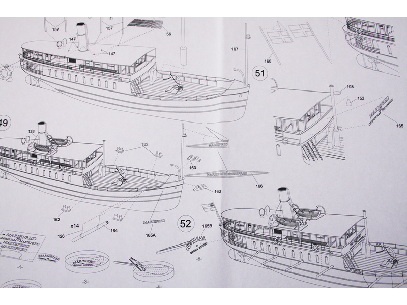 Stavebnice modelu lodi Nordic Claas Boats Mariefred s/s kit. Jeden z mála stále aktivních parních člunů ve Švédsku Mariefred, byl dán do provozu v roce 1903 na trati Stockholm-Enhörna-Mariefred. Od té doby je stále v provozu. Model má dřevěné díly vyřezány laserem, kování jsou kovové odlitky a mosaz.