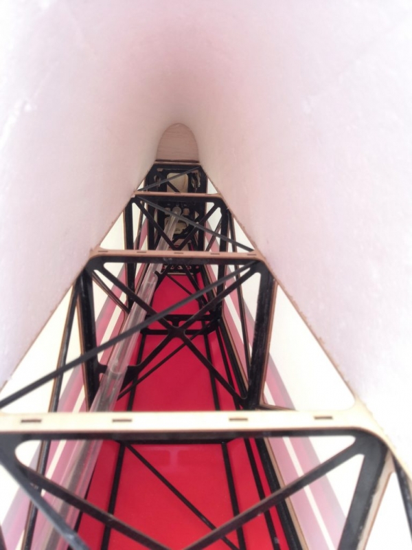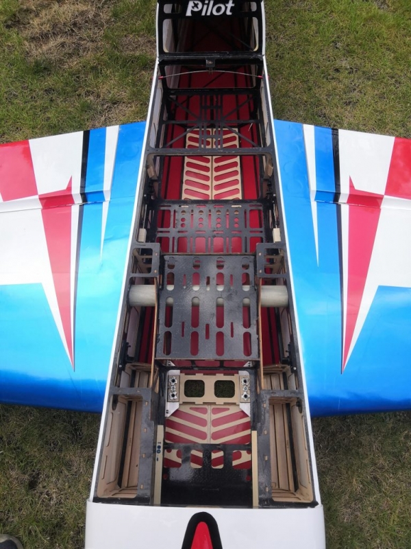 - Zesílený trup a křídla překližkou přelaminovanou uhlíkem a uhlíkovými nosníky.