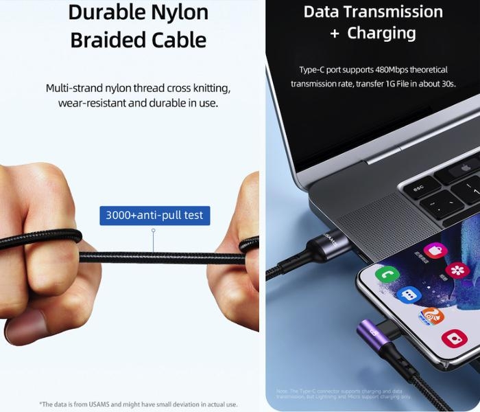 Length: 1.2m Type-C Output: 6A Max. Lightning Output: 2.4A Max. Micro Output: 2A Max.
