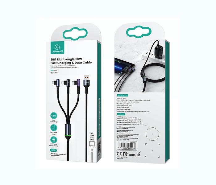 3in1 Right-angle 66W Fast Charging & Data Cable (L + C + M)