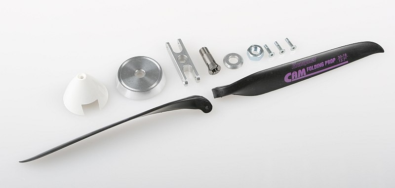 Sklopná vrtule 13x7" pro přímý náhon, kužel 40 mm, kleština 5 mm, pro listy 1336.33.18, 8 mm kořen, 3 mm čep. Náhradní kužel 6041.