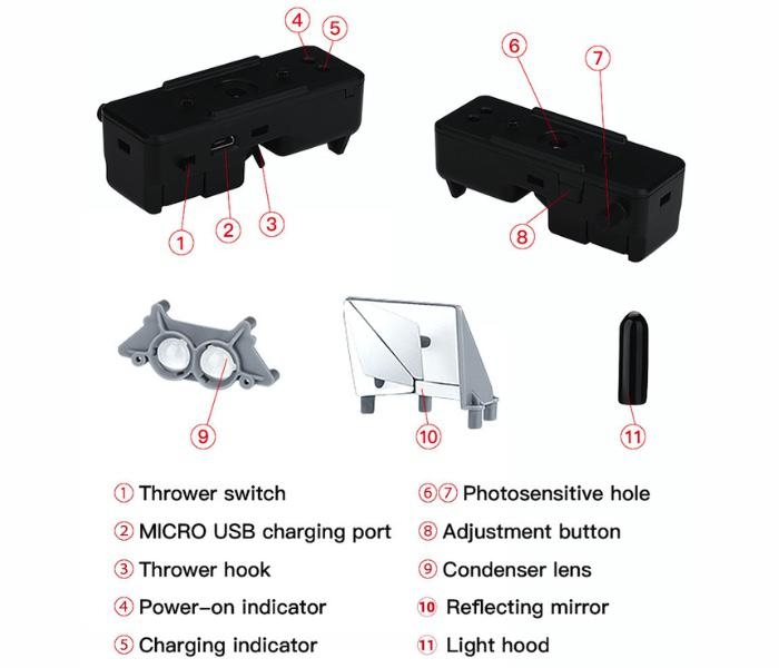 Weight: 103.5g Battery Capacity: 80mAh Charging Time: About 50 minutesMax. Playload: 500g With the bottom light concentrator and reflector