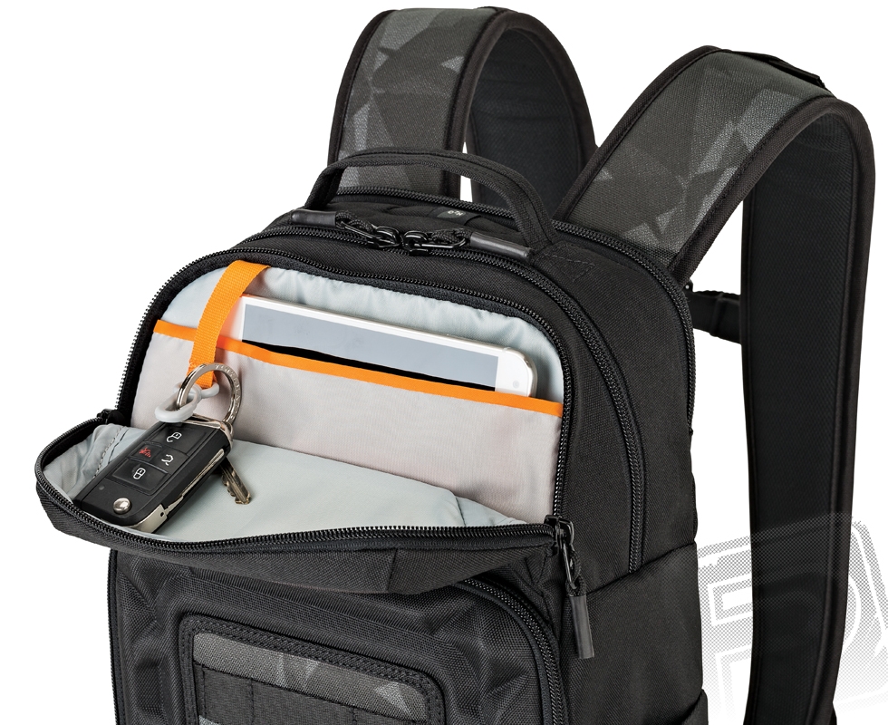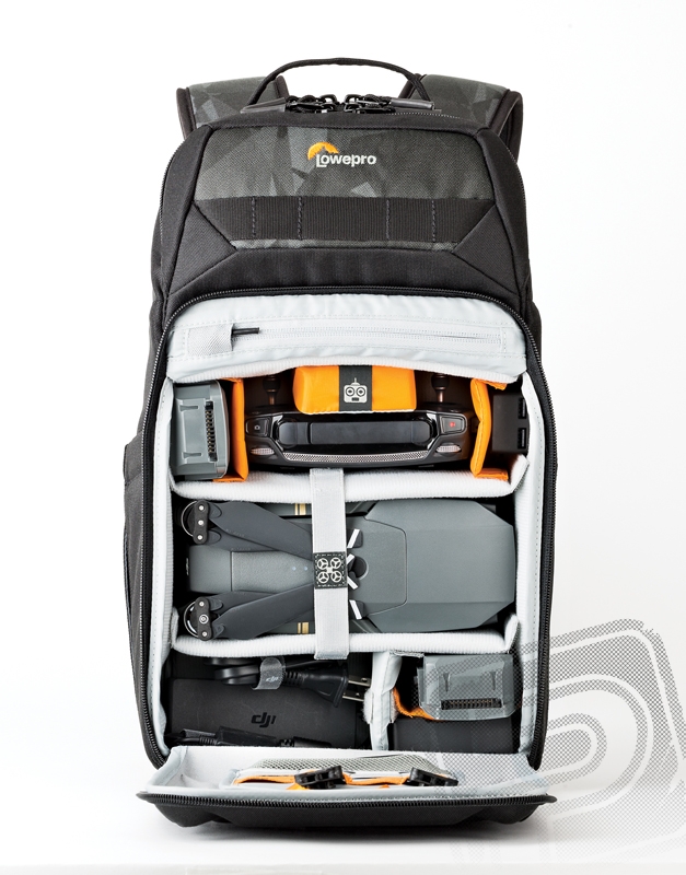 Tříkomorová konstrukce nabízí dostatek organizovaného prostoru nejen pro drone, ale také pro nezbytné příslušenství, notebook, tablet, dokumenty a osobní věci. Vezměte si do terénu CSC nebo DSLR fotoaparát s náhradními objektivy, vše se do batohu vejde bez problémů.