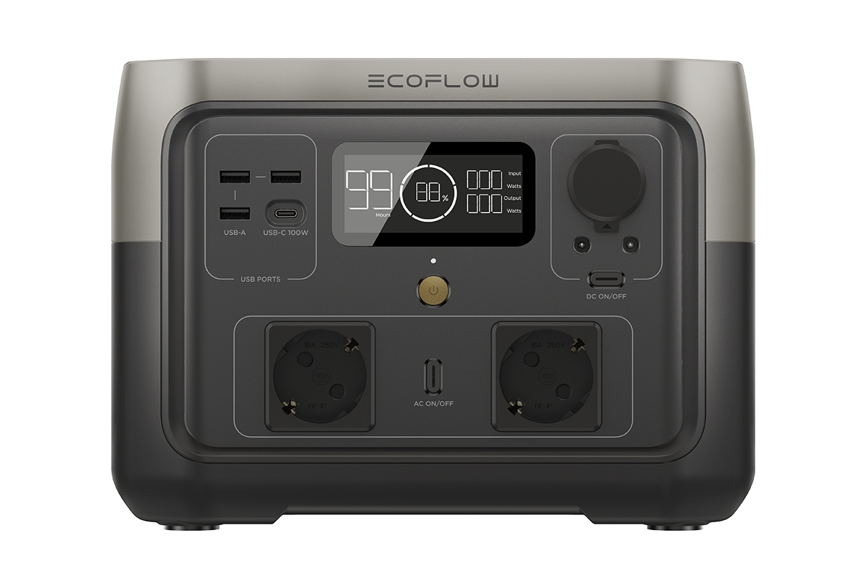 EcoFlow RIVER 2 Max je lehce přenosná bateriová stanice s hmotností 6 kg, kapacitou 512 Wh a stálým výkonem 500 W. Nabízí řadu portů pro všechna vaše zařízení včetně dvou AC zásuvek. Stanice se ze sítě dobije z 0 na 100% za 60 minut. Dále je možné dobíjení pomocí solárních panelů nebo v autě. Díky LFP akumulátorům může zaručit velkou životnost a bezpečnější provoz.