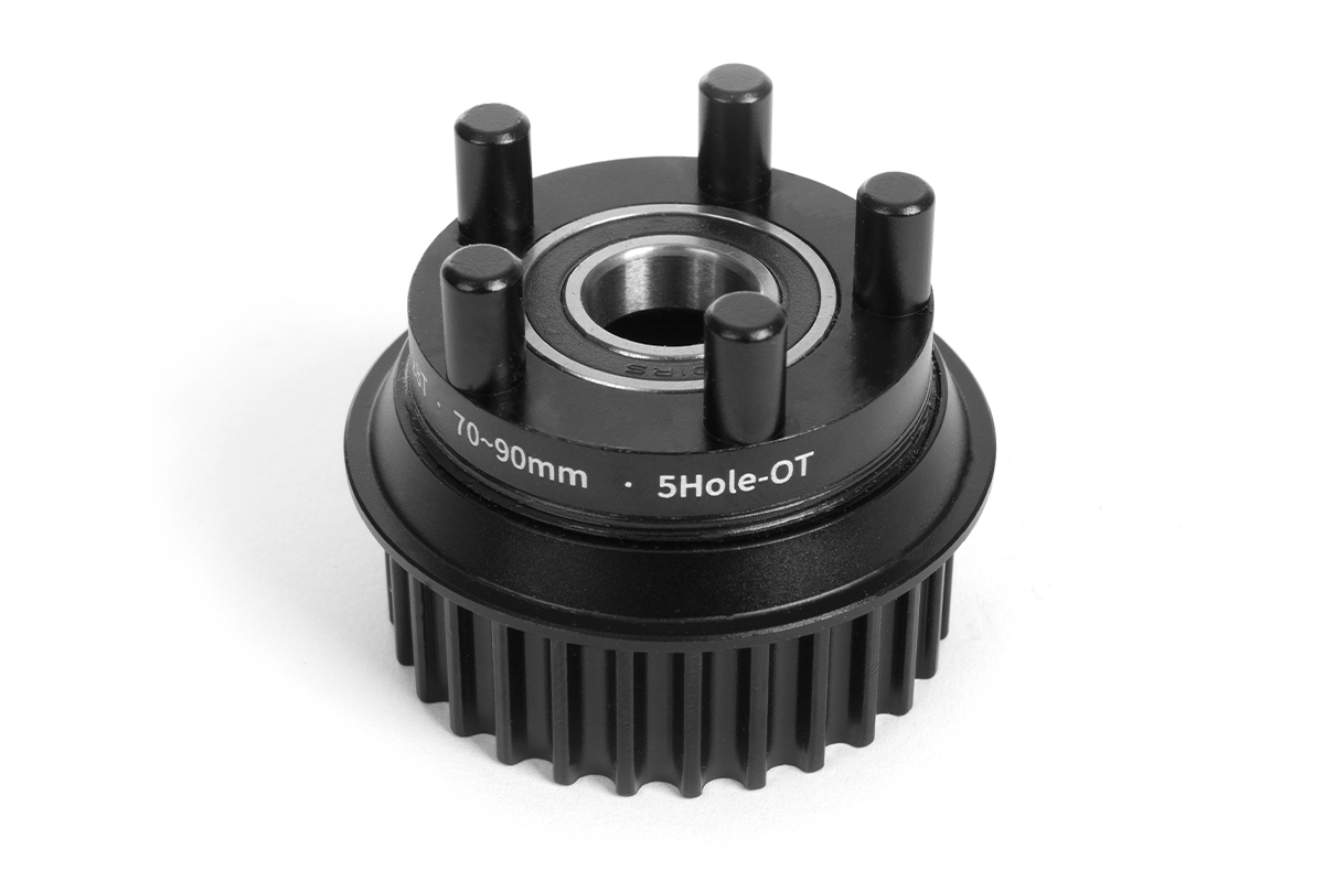 Převodové kolo pro e-boardy Exway. Balení obsahuje 2 kusy. Pulley s 5 kolíky pro kola Orangatang Caguama 85 mm a Orangatang Kegel 80 mm. Materiál: CNC frézovaný kov. Doporučená délka řemenu 230 mm pro modely Flex, X1 Max a Wave; 255 mm pro Atlas.