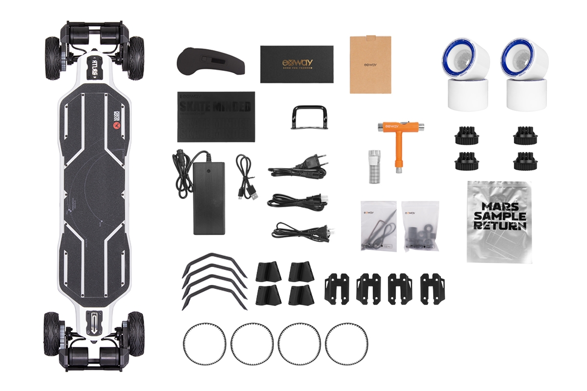 Vysoce výkonný a všestranný modulární e-longboard Exway Atlas. Sada se zadním pohonem a terénními 160mm kolečky. Dojezd až 54 km. Max. rychlost 43 km/h.