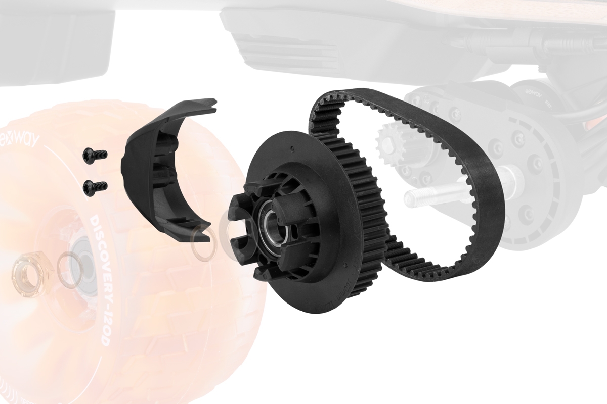 Montážní sada pro 120mm Cloud Wheels pro longboard Exway Flex Riot. Sada obsahuje: 2x adaptér kol (AP-6H16W44T), 2x řemen (ABT-15W280P), 2x kryt motoru (ACV-44TCF1)