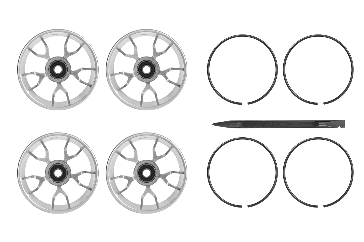 Kovový vnitřek kola Precision Hub pro Atlas Pro. Patentovaná quick-release technologie pro výměnu duše pneumatiky bez montáže. Šířka 48,6 mm, průměr 106,4 mm. Dvě barevné varianty Hubu lze kombinovat se 7 variantami obrouček a 6 variantami Precision Pulley. Combo obsahuje Precision Huby i vnější a vnitřní obroučky kol v stříbrném barevném provedení.